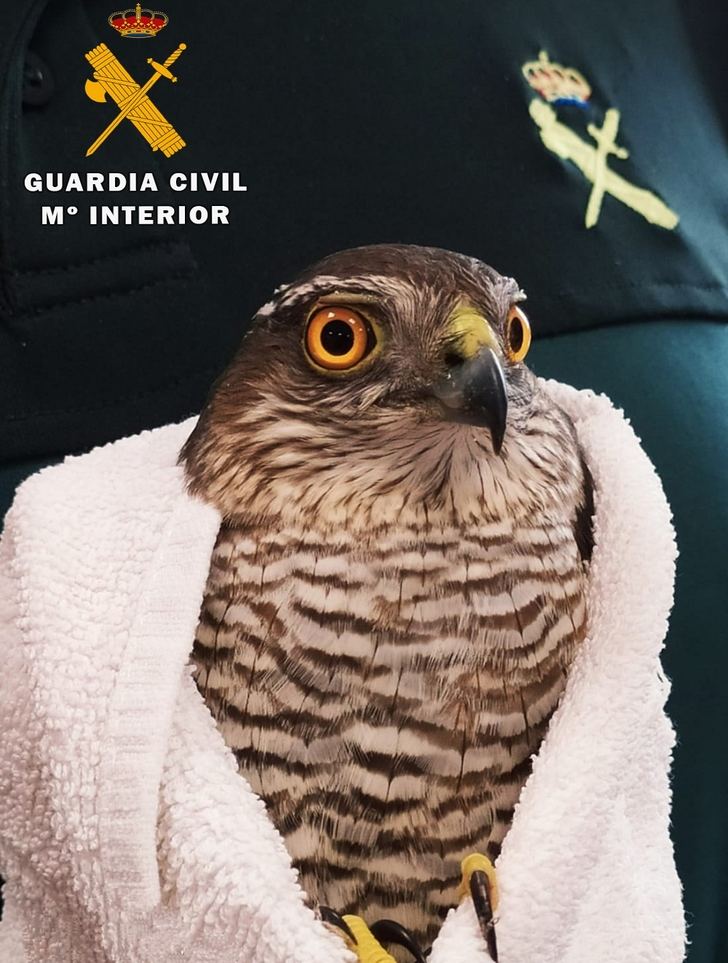 Efectivos de la Guardia Civil de Aguas Nuevas han recuperado un ejemplar adulto de gavilán común, localizado por unos ciclistas cuando transitaban por una finca ubicada en el término municipal de la localidad albacetense de Peñas de San Pedro.