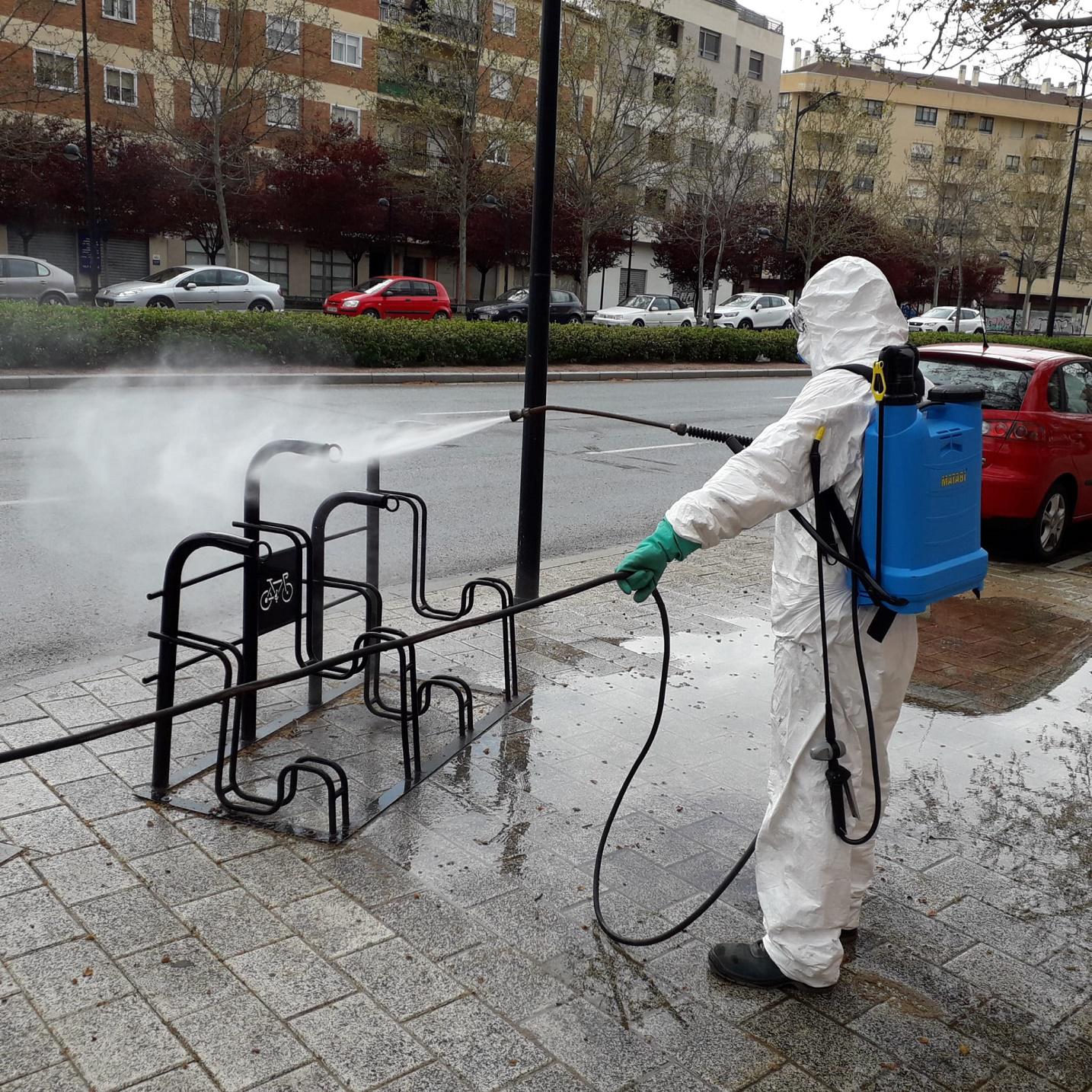 Desde la Concejalía de Sostenibilidad y Cambio Climático, han informado que para realizar este trabajo la ciudad se ha dividido en 30 sectores, sobre los que trabajan 15 equipos de desinfección manual del mobiliario, nueve de los equipos trabajan en turnos de mañana, tarde y noche, y los otros seis a dos turnos. Estos operarios desinfectan con equipos de hidropresión y mochilas nebulizadoras, utilizando agua con lejía disuelta. Hasta el día de ayer estos equipos de desinfección manual habían realizado 2.643 tareas de limpieza y desactivación de posibles virus en el mobiliario urbano.