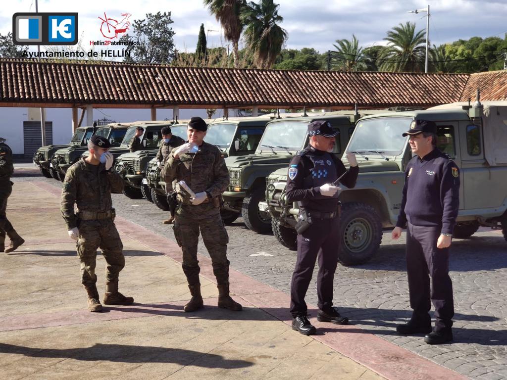 La actuación llevada a cabo esta mañana se irá repitiendo en días sucesivos. La llegada de los militares es una medida que se suma a la labor de concienciación a la ciudadanía hellinera sobre la importancia del confinamiento en sus casas y así poder controlar y vencer la pandemia del coronavirus.