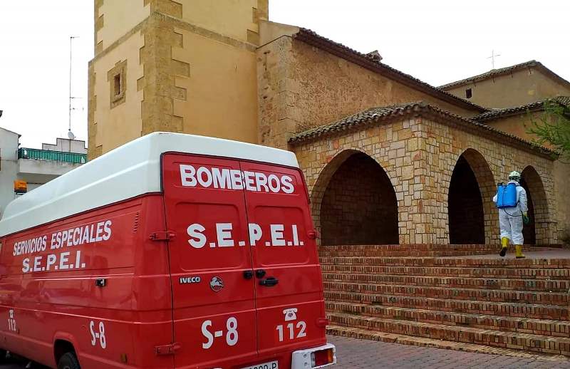 El Servicio Provincial de Extinción de Incendios de la Diputación de Albacete continúa trabajando sin descanso en labores de desinfección de espacios públicos en todo el territorio. Unas actuaciones que se vienen desarrollando desde que se declara el Estado de Alarma y que esta semana han llegado a más de 40 municipios.