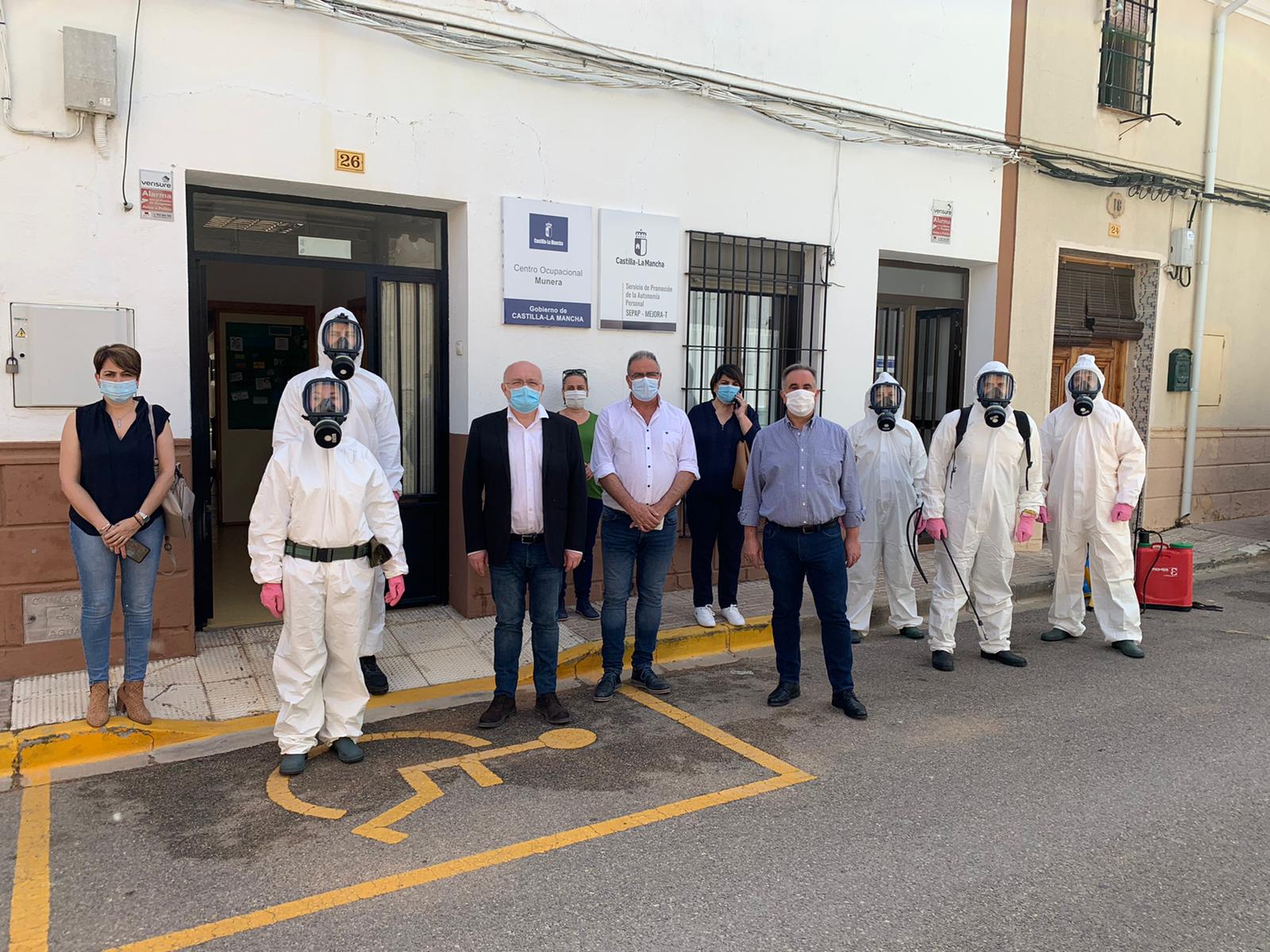 Así lo ha destacado Ruiz Santos, durante las labores de limpieza y desinfección interior y exterior realizadas en el Centro Ocupacional de Munera, y en las que también ha estado presente el coordinador provincial de GEACAM, Manuel Valcárcel y el alcalde de la localidad, Desiderio Martínez, además de otros representantes de la Corporación.