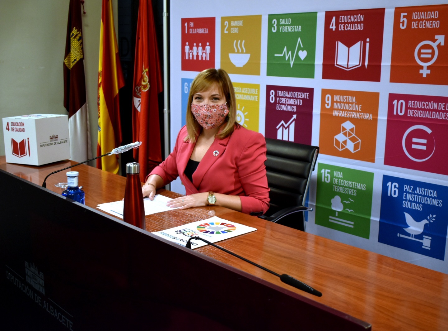 El Programa A21E-H2030 nació en 2008 y está participado, además de por la propia Diputación de Albacete, por la JCCM (a través de las delegaciones provinciales de Educación y de Desarrollo Sostenible) y por los Ayuntamientos siendo, sin duda "la mejor 'semilla' con la que, desde las aulas, podemos seguir avanzando hacia la consecución de los objetivos del desarrollo sostenible de la Agenda 2030 de Naciones Unidas que son un referente, rotundo y evidente, en la hoja de ruta de la gestión de esta Diputación (y, de manera especial para la Agenda 21 Escolar desde 2015)" ha subrayado Torres, refiriéndose precisamente a la nueva imagen trasera que, desde hoy, tendrá la Sala de Prensa de la institución, así como los 'cubos' que acompañarán a las distintas comparecencias, hilando de lleno sus respectivos contenidos a los ODS pertinentes.