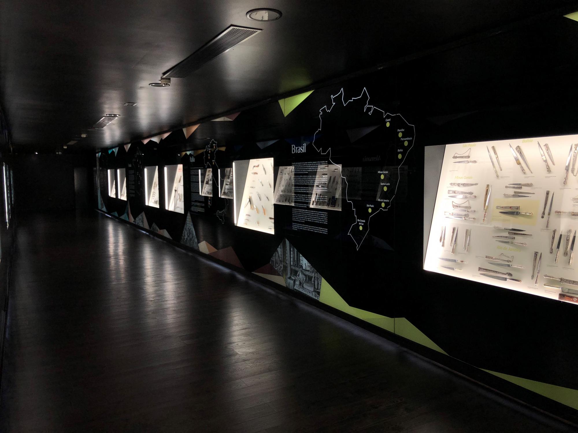 “Entre Navajas y Cuchillos” se exhibe en el espacio conocido como Galería del Coleccionista. La exposición la conforman un total de 540 piezas de cuchillería, propiedad de José Falcâo, coleccionista portugués que ha dedicado muchos años de su vida a la adquisición y recolección de navajas y cuchillos; a su estudio y documentación; a la investigación del contexto histórico, social y económico de estos objetos, y a su custodia y conservación.