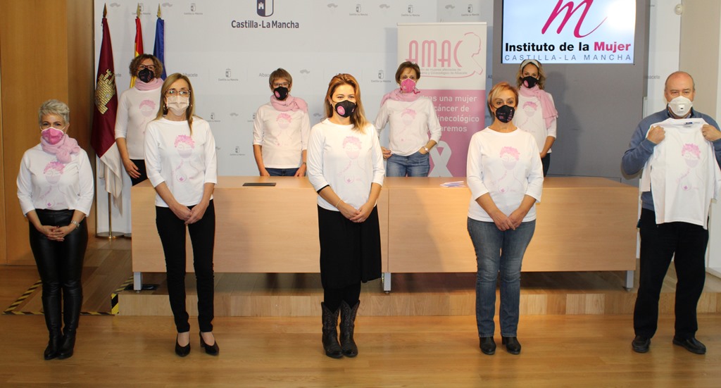 La Consejería de Igualdad de Castilla-La Mancha y la Asociación de Mujeres Afectadas por Cáncer de Mama y Ginecológicos de Albacete (AMAC) han presentado hoy, en la sala de prensa de Casa Perona, la camiseta elaborada con motivo del 20 Aniversario de la trayectoria de este colectivo sociosanitario.