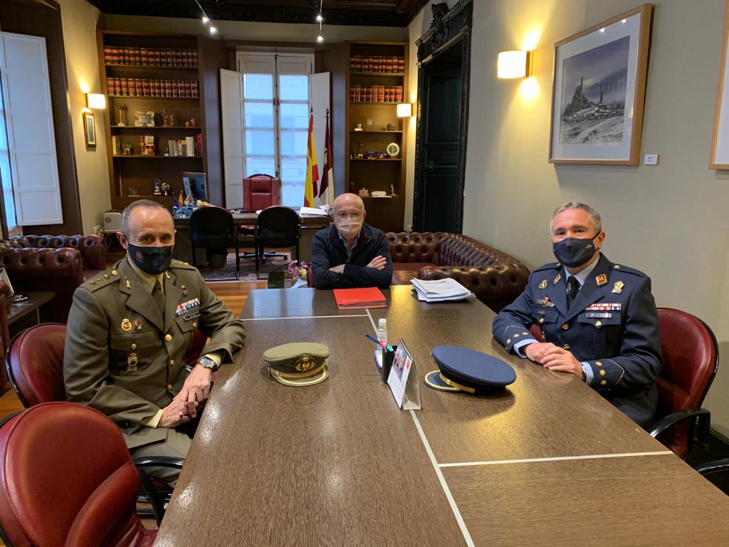 Así lo ha trasladado el delegado de la Junta, Pedro Antonio Ruiz Santos en nombre del presidente de la Comunidad Autónoma, Emiliano García-Page, en un encuentro oficial, mantenido hoy en la Casa Perona, en el que también ha tenido la oportunidad de saludar al coronel del Ejército del Aire, Miguel Ángel de la Torre Solís, quién asumirá esta responsabilidad dependiente del Ministerio de Defensa, en el relevo que se materializará en los próximos días.