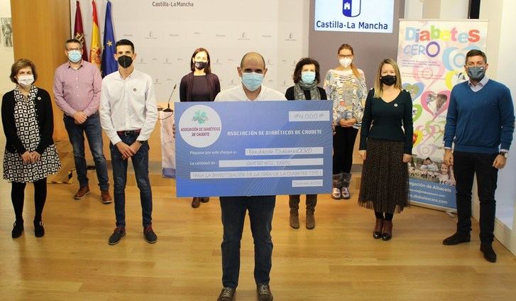 Así la Casa Perona, sede de la Delegación de la Junta de Comunidades en la ciudad de Albacete, ha acogido hoy, el acto de entrega de un cheque de 4.000 euros donados por la Asociación de Personas Diabéticas de Caudete a la Fundación DiabetesCero en su objetivo fundamental de seguir incrementando financiación para tres proyectos avanzados de investigación de esta enfermedad.