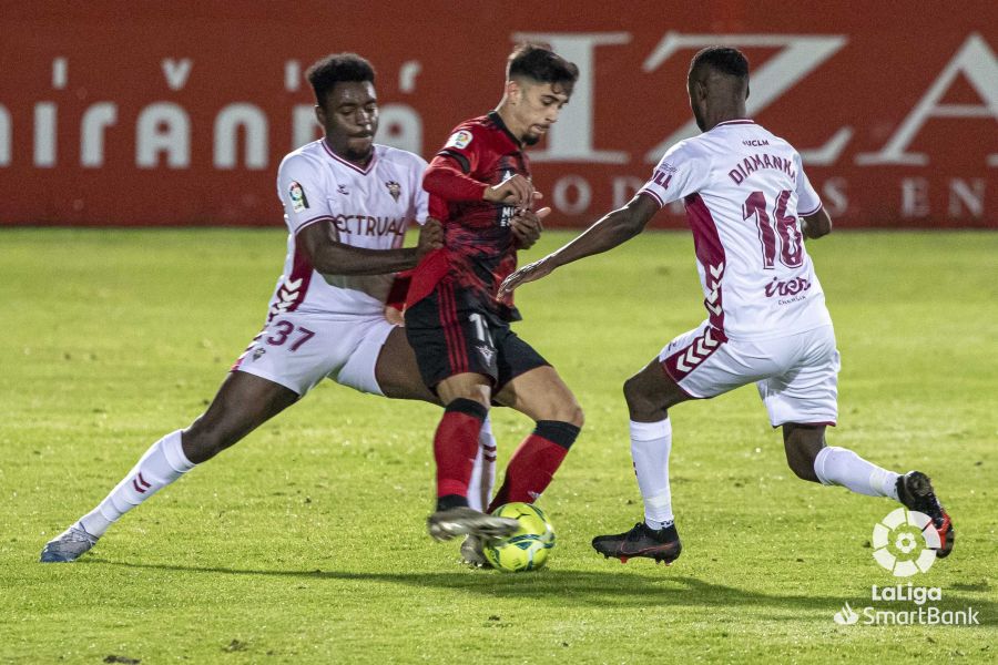 No llegaba con claridad el conjunto manchego que sin embargo consiguió frenar al Mirandés con buenas defensas y en la primera que tuvo Pape Diamanka adelantó al Albacete tras un remate en plancha gracias a un centro milimétrico de Diego Caballo.