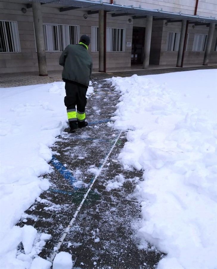 Durante la jornada de hoy, el Servicio Municipal de Educación ha comenzado a calefactar los 33 colegios de Albacete y sus pedanías y se trabaja para retirar de nieve y hielo sus accesos y patios, con el objetivo de que el alumnado se pueda reincorporar sin problemas a las clases el próximo miércoles.