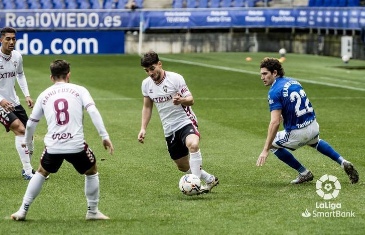 Pese a la necesidad de igualar para pensar en remontar de los azules, fue el Albacete quien más cómodo se mostró sobre el terreno de juego defendiendo los envites carbayones con orden atrás y buscando ampliar su renta a la contra aunque sin éxito.