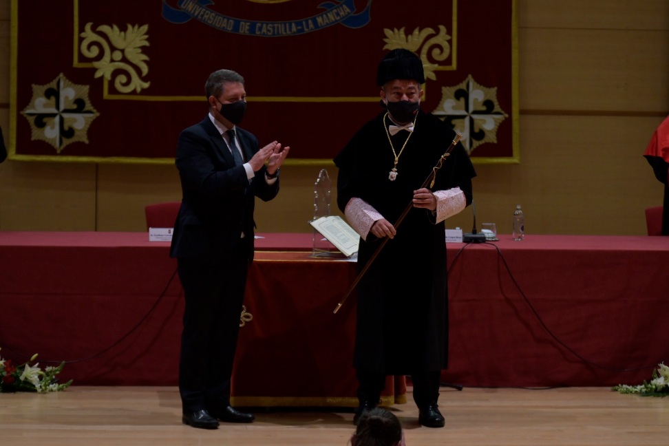 El presidente de Castilla-La Mancha, Emiliano García-Page, ha ejercido como maestro de ceremonias en un acto que, tras una actuación musical ha arrancado con la lectura del decreto del 21 de diciembre por el que se nombró a Julián Garde como nuevo rector de la institución académica a cargo de Isabel Gallego, la nueva secretaria general de la UCLM.