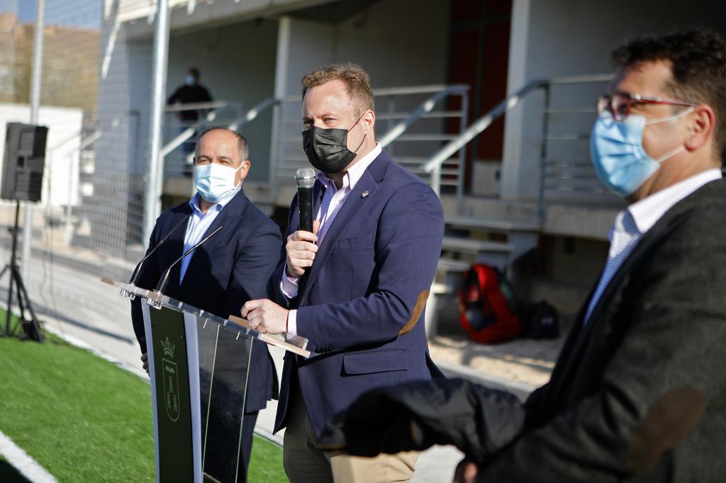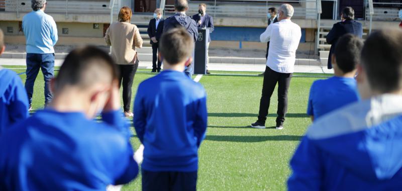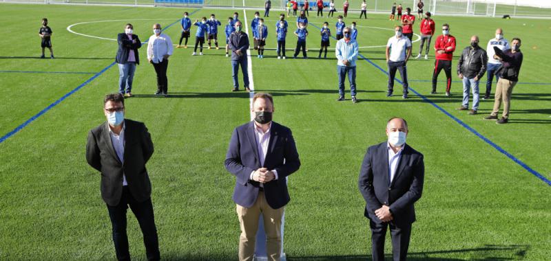 La transformación de dos campos de fútbol de tierra a césped ha sido realizada por Mondo Ibérica, con una inversión total de 794.480 euros. La superficie de juego de arena ha sido sustituida por hierba artificial de última generación, actuación que ha venido acompañada de la instalación de una red de riego por cañones, instalación de iluminación con proyectores tipo LED, una red de drenaje y el equipamiento deportivo completo de la instalación. Sobre el césped, además, se han marcado cuatro campos de fútbol siete (dos en cada campo) en un color diferente al marcaje de los campos de fútbol 11. En total, se ha actuado sobre una superficie de 13.500 metros cuadrados.