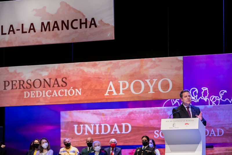 El presidente autonómico ha insistido en la pertenencia de Castilla-La Mancha a España. "Si somos autonomía es porque somos españoles. Sólo en este espacio constitucional se han visto reconocidos nuestros derechos y libertades", ha recordado.