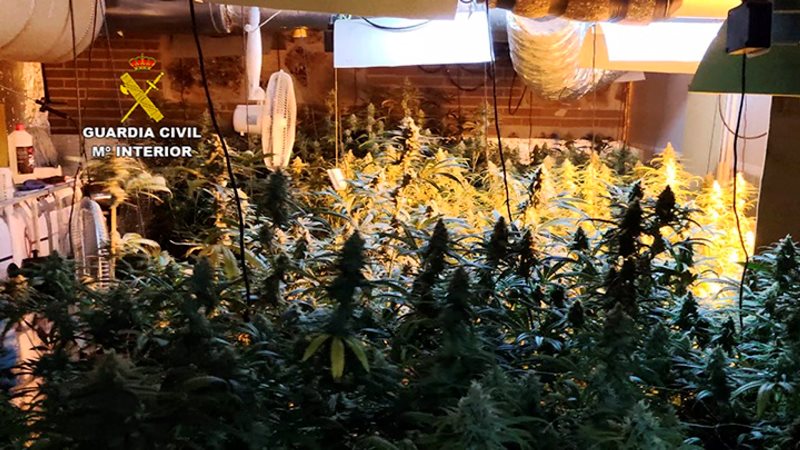 El pasado jueves, apoyados por un dron del Equipo PEGASO, la USECIC y por unidades territoriales de la Guardia Civil de El Casar, se practicó la entrada y registro debidamente autorizada por la Autoridad Judicial en el domicilio, localizando una plantación de marihuana 'indoor' con 787 plantas en avanzado estado de crecimiento que estaban a punto de ser recolectadas, con un peso aproximado de unos 301 kilogramos, que estaban cultivando en la planta baja de la vivienda.