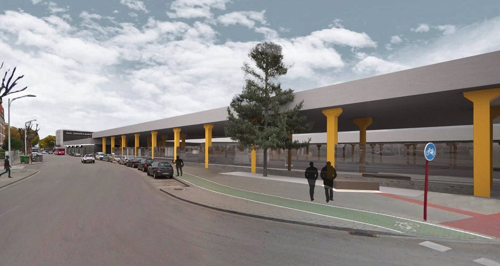 Respecto al patio de dársenas, el proyecto contempla la demolición de parte del muro en la calle Federico García Lorca para ser sustituido por un cerramiento de vidrio de seguridad para transmitir que la estación de autobuses forma parte de la ciudad, de la vida del vecindario, y que no debe estar oculta tras un muro. Además, ese muro perimetral, en su parte interior, se revestirá mediante panel composite con subestructura de aluminio.