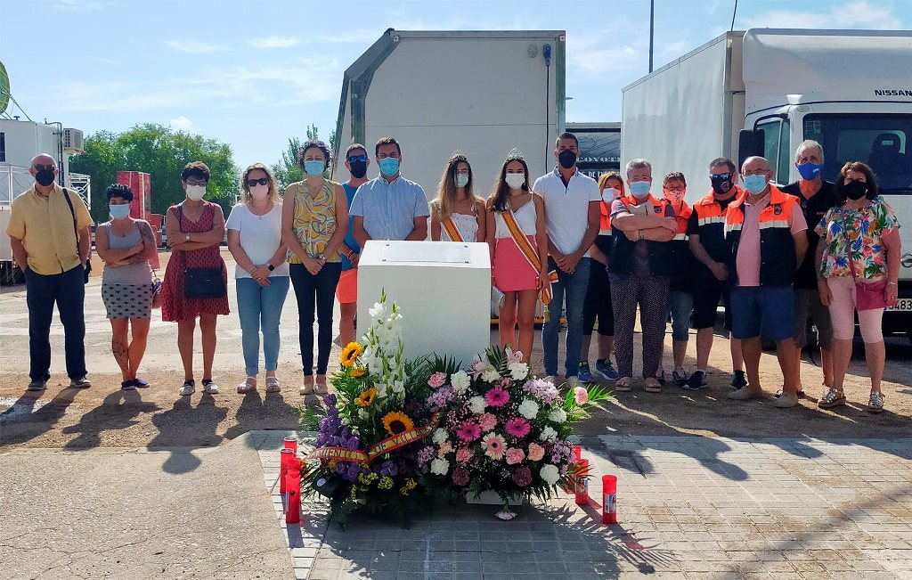 Las Reinas de las Fiestas, acompañadas del alcalde, Jaime Martínez, concejales, miembros de la Comisión de Festejos y de la Agrupación de Voluntarios de Protección Civil, han depositado un centro de flores junto a la placa instalada en el acceso al recinto ferial por la calle Quero, con la que el pueblo de Villacañas homenajea y recuerda a los cuatro jóvenes rumanos fallecidos en aquella trágica noche del 9 de agosto de 2011. Se trata de Ioan Andrei, Dan Andrei, Dan Teodor Boian y Ancuta Ionela Rus.