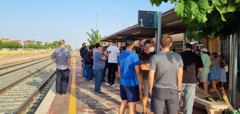 Unas doscientas personas se concentraron el Estación de Renfe en Hellín, a la llamada de la Plataforma para la Defensa del Tren esperando el paso del convoy Alvia, Madrid-Cartagena, a las 19,30 horas