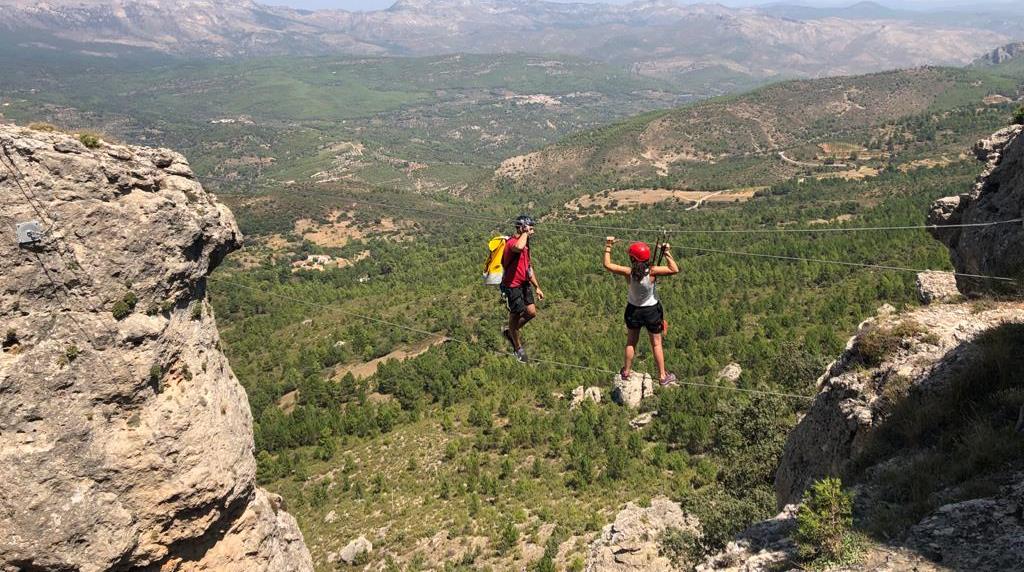 Tras la inauguración oficial, la diputada provincial ha podido disfrutar de esta una nueva travesía en altura que comprende una longitud de 900 metros y en cuyos trabajos de evaluación de seguridad han participado efectivos del SEPEI de la Diputación. En concreto han sido los bomberos del Parque de Molinicos quienes han inspeccionado el Plan de Emergencias realizado en las instalaciones por la empresa Akawi adventure S.L. en colaboración con Ferratas de hierro y roca, preparándose así para una rápida y solvente intervención en la zona en caso de accidente.