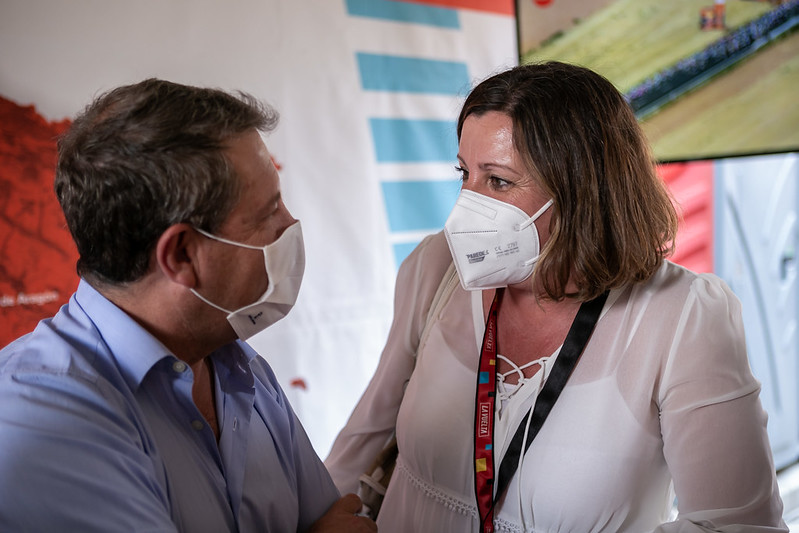 Santi Cabañero ha agradecido a la consejera de Economía, Empresas y Empleo (Patricia Franco) y al Gobierno de C-LM con su presidente Gª-Page al frente, “el liderazgo demostrando al reunir una vez más a distintas Administraciones para apostar de la mano por hechos que, de veras, se traducen en resultados tangibles, y logrando que ese gran ‘foco’ que es La Vuelta se detenga y se recree en esta tierra”.