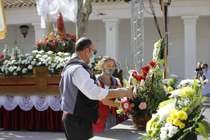 A los pies de la capilla de la Virgen, en el Recinto Ferial, se han dispuesto sillas con un aforo de 1.000 personas para facilitar a la ciudadanía que siguiese esta misa, a cuyo término, la Peña El Templete ha realizado una sencilla ofrenda a la Virgen de Los Llanos, en nombre de todos los ciudadanos y ciudadanas, que cada año participan en la Ofrenda a la Virgen y que este año, debido a la situación sanitaria, no ha podido celebrarse.