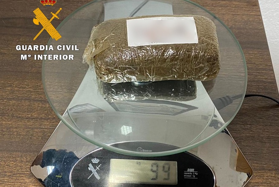 Tras la parada del vehículo e identificación de su conductor, la Guardia Civil realizó el registro de sus pertenencias así como del interior del turismo, localizando en un compartimento bajo el asiento del conductor un paquete que contenía una sustancia marrón, de un olor característico, que resultó ser hachís, arrojando un peso total de 99 gramos.