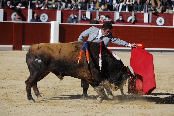 Y llegó lo más vistoso de la mañana con Miguel Tendero y el novillo de Los Chospes, comenzando su lidia con el buen manejo de la muleta. Tendero supo mantener al novillo que tenía cuajo y bonita lámina, manejando la muleta con pases a media altura y dando la distancia que el novillo pedía ,lo supo entender y con la franela en la zurda toreo con hondura, mucho toreo citando de lejos, para finalizar con desplantes y naturales de rodilla. Estocada suficiente para que la presidenta concediera las dos orejas tras la fuerte petición del público. Tendero torero como se decía con este de los Chospes, como los ángeles.