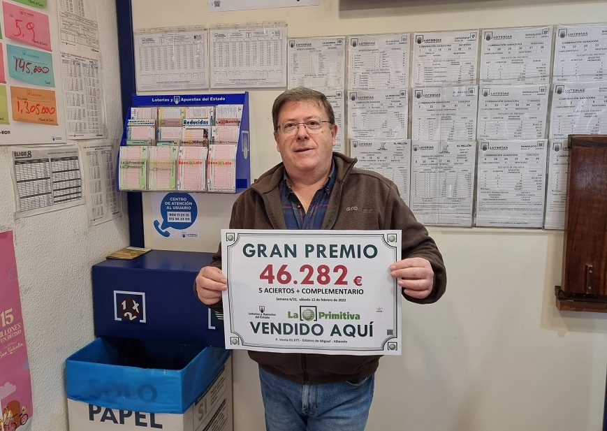 La Lotería Primitiva ha dejado un premio de 46.282,11 euros en Albacete. Ha sido en el sorteo 13 de la Primitiva de este año, el del sábado pasado. Aparecieron de ese día cinco boletos con premio de segunda categoría (5 + complementario), uno de ellos fue validado en Albacete, en el punto de venta 1.975, en la calle Octavio Cuartero, 21.