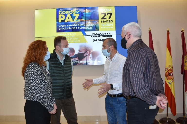 El vicealcalde y concejal de Cultura, Vicente Casañ, y la concejala de Atención a las Personas, Juani García, han dado las gracias a las agrupaciones corales que en Albacete han cogido el testigo de esta iniciativa a la que se han sumado todas las capitales de España y que se ha lanzado a todos los países europeos, a través de la plataforma https://www.corosporlapaz.org/