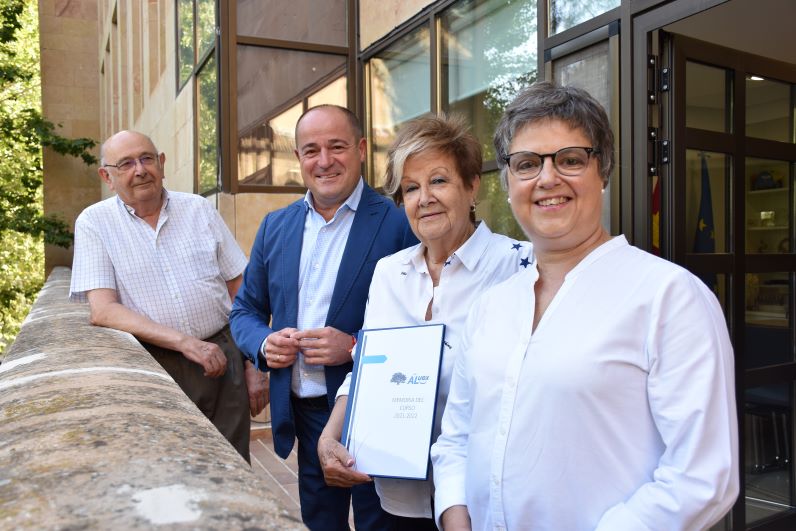 Esta reflexión fue traslada por el alcalde a la junta directiva saliente de ALUEX, encabezada por Carmen Rosa Martínez Orellana, que acompañada de Estela Molina y Francisco Díaz Gómez, hicieron llegar a Emilio Sáez la memoria de actividades del curso 2021-2022 y le comunicaron su deseo de entregar el testigo a nuevas personas que deseen tomar las riendas de esta asociación.