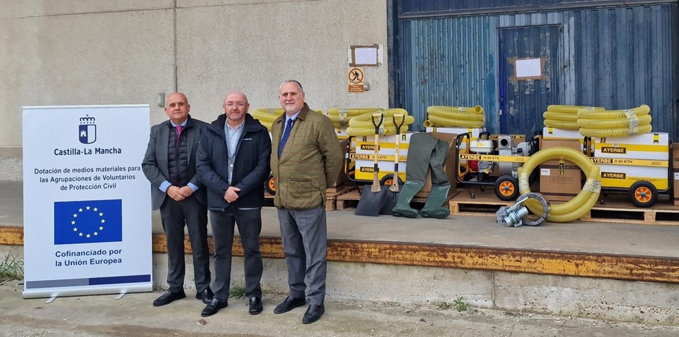 Respecto a las bombas de achique para inundaciones, cada lote también incluye palas y pantalones de rescate o vadeador. Las agrupaciones de Protección Civil que han recibido este equipamiento son: Férez y Yeste (Albacete), Villahermosa (Ciudad Real), Valle de Altomira y Villalpardo (Cuenca) y La Guardia y Quero (Toledo).