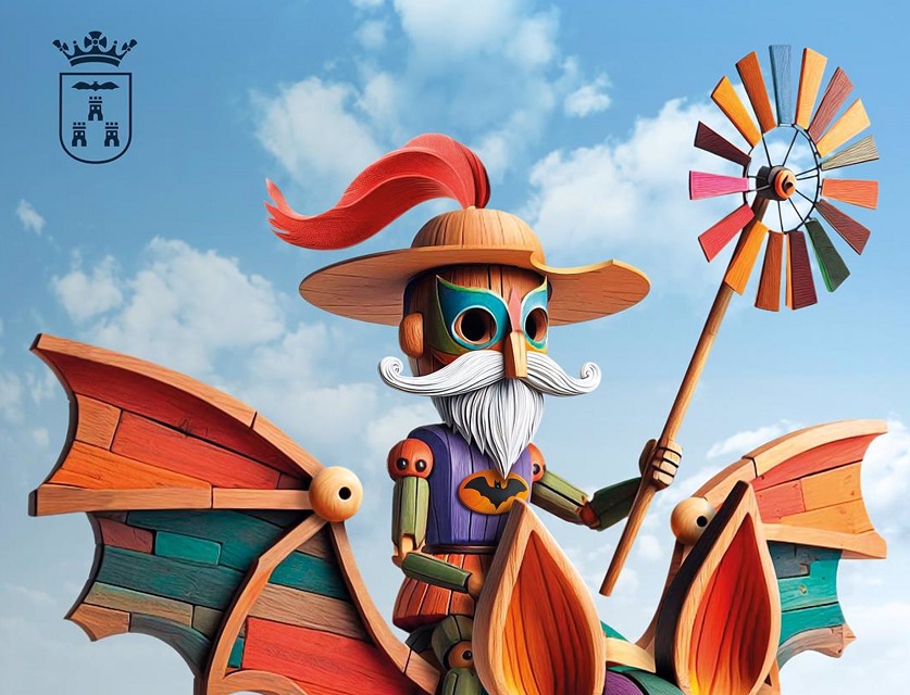 El cartel, según ha detallado su autor, está diseñado por medio de una tableta gráfica y muestra a un "Quijote albaceteño, vestido con el peto de Batman y montado en un murciélago, escudo de la capital, mientras va repartiendo confeti por todas partes".