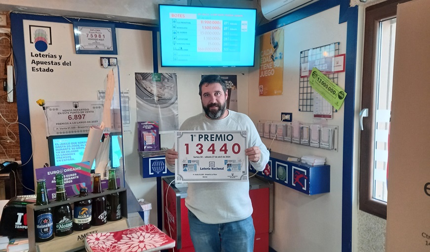 El número 13440 ha sido agraciado con 600.000 € a la serie, premiado en el establecimiento receptor nº 01550 de dicha localidad, sito en la calle Charco nº6 (braseria la Plaza ).