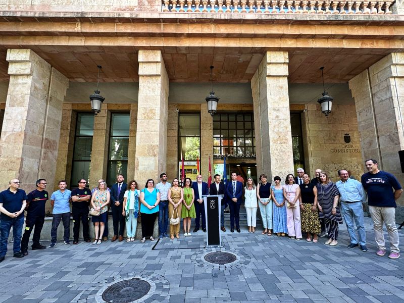 El alcalde de Albacete ha participado en el minuto de silencio convocado en la puerta del Ayuntamiento en señal de condena y repulsa por las últimas víctimas de la violencia de género. Junto a representantes de diversas instituciones y administraciones, como el presidente de la Diputación Santiago Cabañero y el delegado de la Junta Pedro Antonio Ruiz Santos, han estado también otros miembros de la Corporación, así como numerosos ciudadanos particulares y trabajadores del Ayuntamiento.