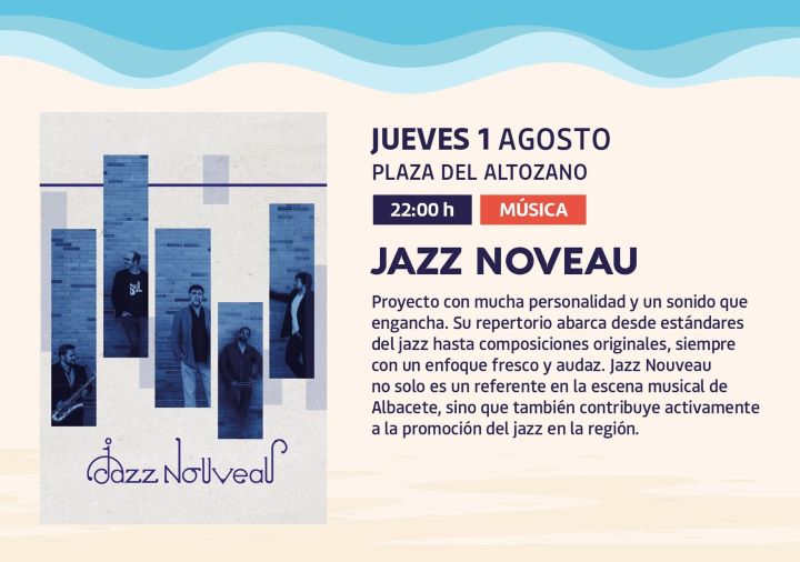 Continua el Verano Cultural, organizado por el Ayuntamiento de Albacete, con la actuación de Jazz Nouveau mañana, 1 de agosto, a las 22.00 horas, en la Plaza del Altozano.