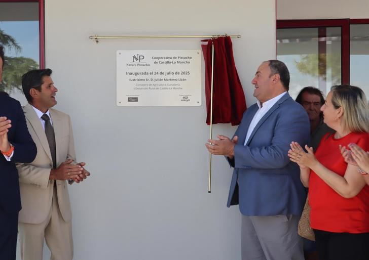 Julián Martínez Lizán lo ha avanzado así en la inauguración de las nuevas instalaciones de la cooperativa de pistacho Nature Pistachio, en Corral de Almaguer, junto al presidente de esta, Luis Martínez Solano; la directora general de Producción Agroalimentaria y Cooperativas, Elena Escobar; la delegada de Agricultura, Ganadería y Desarrollo Rural en Toledo, Elena Martín; y el coordinador de la Junta en Toledo, Javier Úbeda.