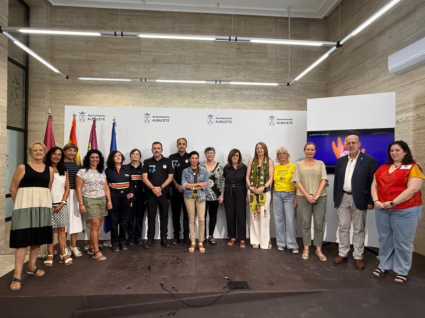 La concejala de Mujer e Igualdad, Gala de la Calzada, ha dado a conocer la campaña de prevención de agresiones sexuales para esta Feria 2025, así como los actos organizados por el Ayuntamiento con motivo del Día de la Igualdad. Acompañaban a la edil en su comparecencia representantes de la Policía Local, Protección Civil, la Fava, la Asociación de Hostelería, Cruz Roja y Amnistía Internacional, así como miembros de Electrollanetes, de la empresa Vértice Cultural (que gestiona el Punto Violeta) y de la Asociación Rockera y Metalera de Mujeres de Albacete ARMMA, encargada de las Rondas Violetas.