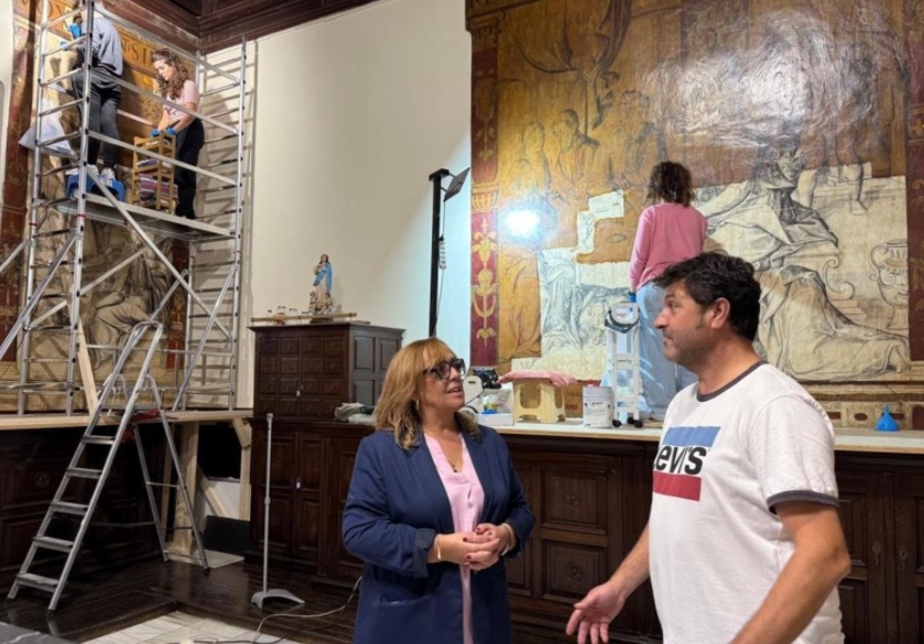 La viceconsejera ha detallado que las acciones incluyen tareas de limpieza, que abarcan la eliminación de barniz y repintes; así como la consolidación de los estratos intermedios y su protección temporal. También se contempla la eliminación de materiales ajenos, además del relleno con mortero.