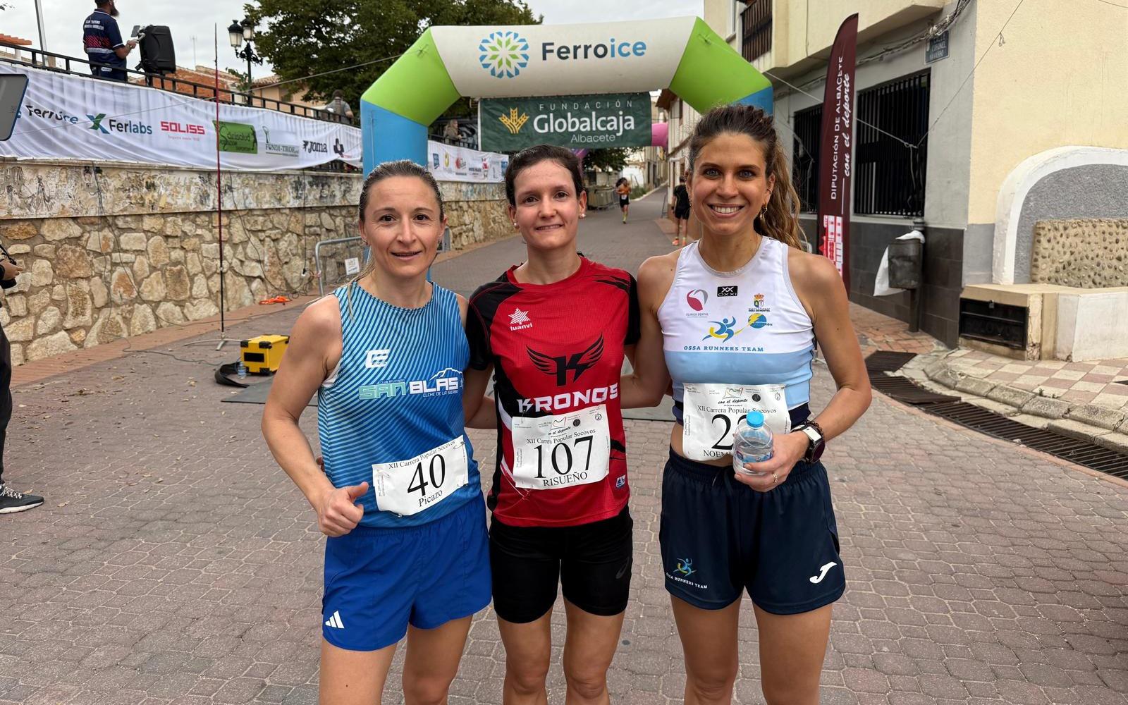 En categoría femenina, Mari Carmen Risueño (CA Kronos) se hizo con su duodécimo triunfo de la temporada, igualando de nuevo la pugna que semana a semana mantiene con Mari Ángeles Magán. A la doctora Risueño la acompañaron en el podio de Socovos Sandra Ruiz Picazo (CA San Blas Elche de la Sierra) y Noemí Campos Chillerón (Ossa Runners Team).