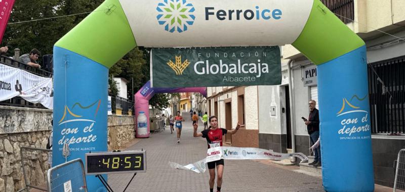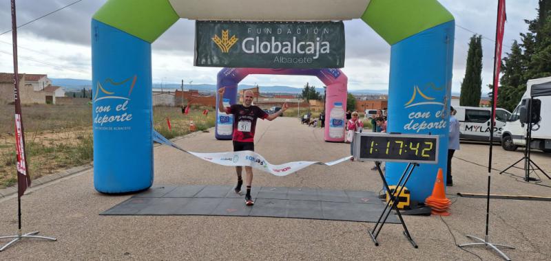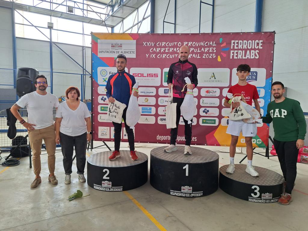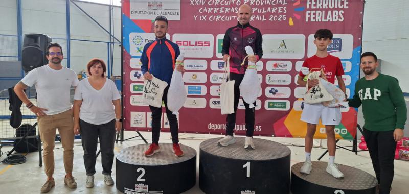 Con el primer puesto de la clasificación general del XXIV Circuito Provincial de Carreras Populares en el bolsillo, José Antonio Hernández Navajas dio el salto a las carreras de montaña en esta cita de Alcalá del Júcar. El estreno no pudo ser mejor, pues subió a lo más alto del pódium en el IX Trail ‘Juan Miguel Soler’. El atleta de Fuentealbilla, con 14 victorias en el Circuito Provincial, sumó así su primer triunfo en el IX Circuito de Trail, en la décimo tercera cita del calendario. David Roldán Tercero y Óscar Tarazona Pérez completaron el pódium masculino en esta prueba de 17’5 kilómetros.