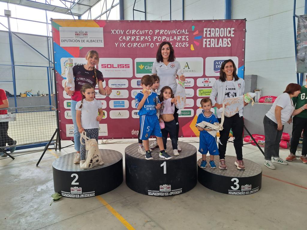 En el podio de la Casa de la Cultura, en el que se entregaron ricos productos de la tierra como embutidos y aceite, también vimos a Gema Rodríguez Sánchez (San Blas Elche de la Sierra) como la atleta de la posición Donantes (71ª), a Dorina Cimpeanu (Tres Leguas Villamalea), que se llevó el cheque Studio Pilates Nieves Azaña, mientras que los mejores atletas locales fueron Inma Martínez y Carlos García Rubio.