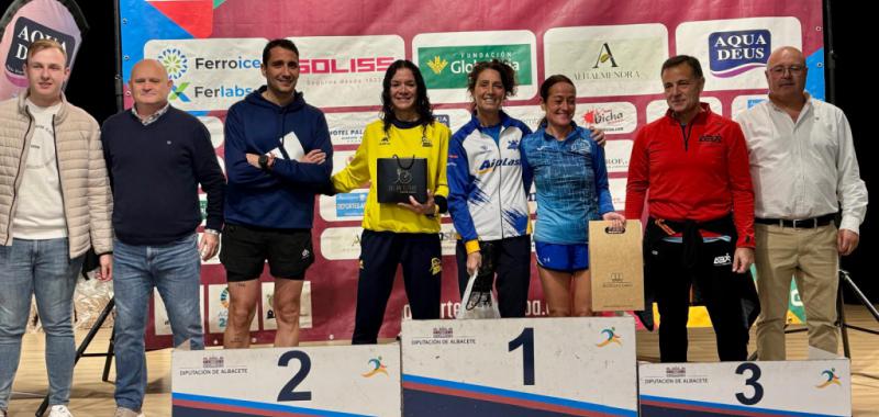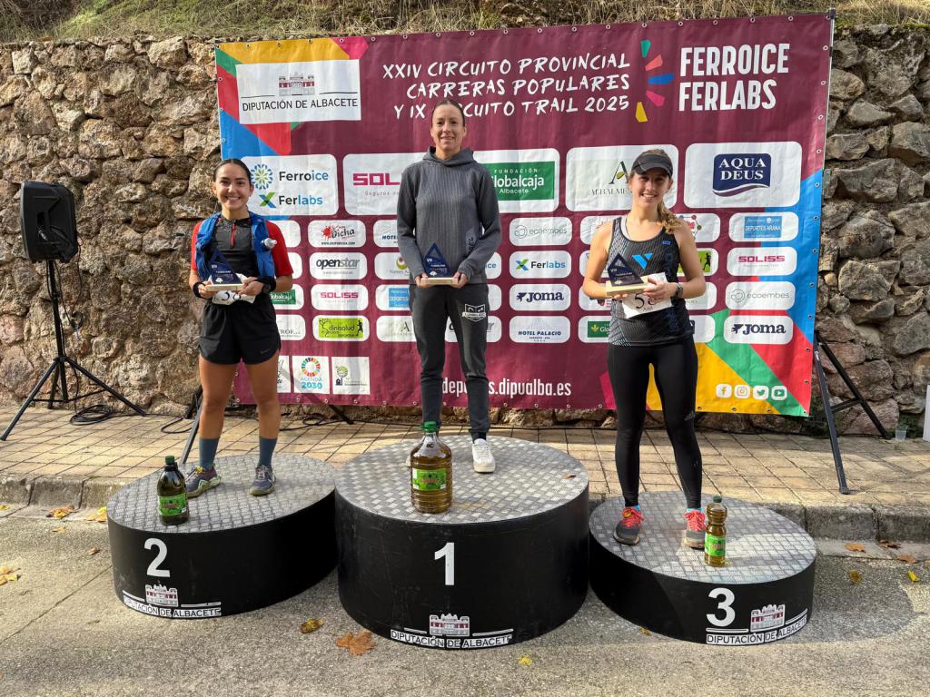 En la categoría femenina, Mª Ángeles Magán subió a lo más alto del pódium, con su cuarta victoria en Aguas Nuevas, lo que la convierte en la atleta que más veces ha vencido en esta localidad. Son ya 13 los triunfos de la de Madrigueras esta temporada, poniéndose por delante de Risueño en cuanto al número de victorias en esa bonita y sana pugna que mantienen ambas en esta edición del Circuito Provincial. Laura Villar terminó en la segunda posición, mientras que Belén López completó el pódium femenino.