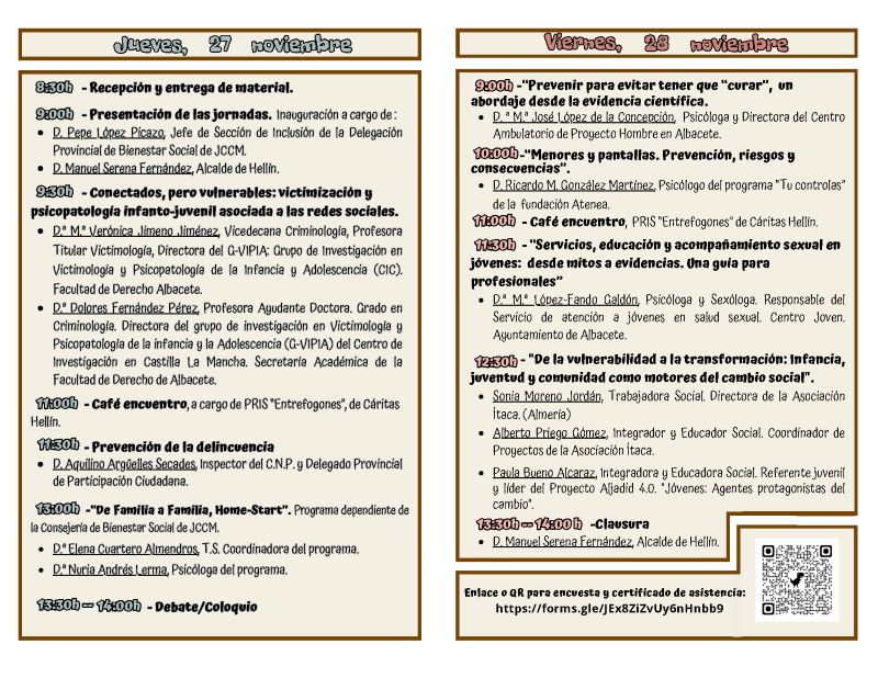 A lo largo de su dilatada andadura, las Jornadas de Formación Familiar del Ayuntamiento de Hellín se han convertido en un referente formativo, así como de actualización de modelos de intervención en temáticas de actualidad e interés, con un enfoque social y comunitario.