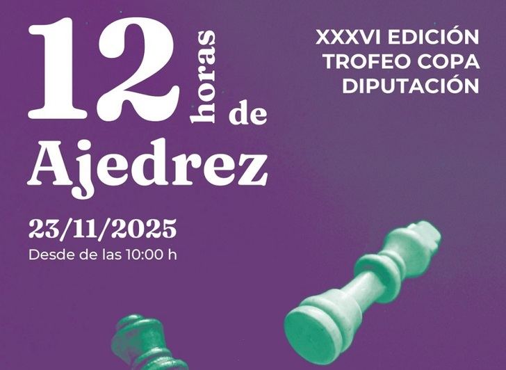 La Diputación de Albacete organiza el XXXVI Trofeo Copa Diputación “12 horas” de Ajedrez el 23 de noviembre en el Depósito del Agua, abierto a todos los jugadores. Se realizarán torneos en varias categorías y se espera la participación de cerca de un centenar de jugadores de diferentes clubes.