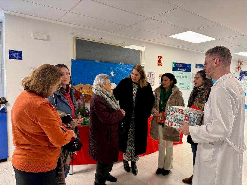 La concejala de Mayores, Gala de la Calzada, y la concejala de Asuntos Sociales, Llanos Navarro, han acompañado a los usuarios del Programa de Autonomía Personal al Hospital Perpetuo Socorro, en un acto entrañable donde como cada año han entregado al personal médico las tarjetas de Navidad elaboradas exprofeso para quienes se ven obligados a pasar las fiestas en hospitalización.