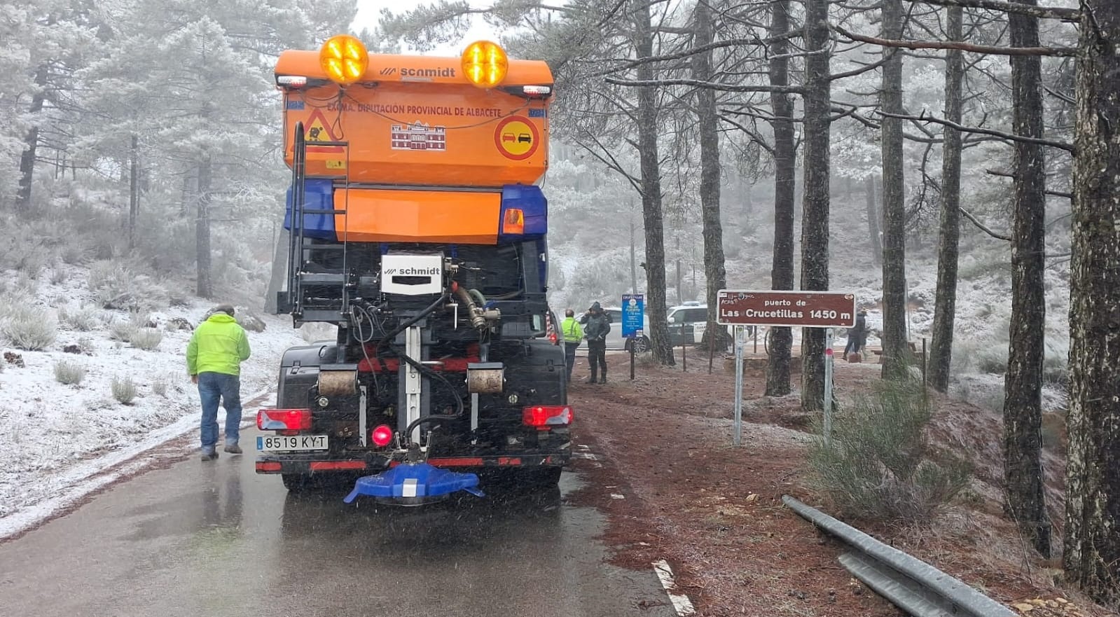 La Diputación de Albacete ha activado un dispositivo para garantizar la seguridad vial en su Red Provincial de Carreteras ante las nevadas. Equipos trabajan en la limpieza de nieve y aplicación de sal, priorizando carreteras montañosas y accesos a pedanías. Se aconseja precaución a los conductores y se realizan labores preventivas.