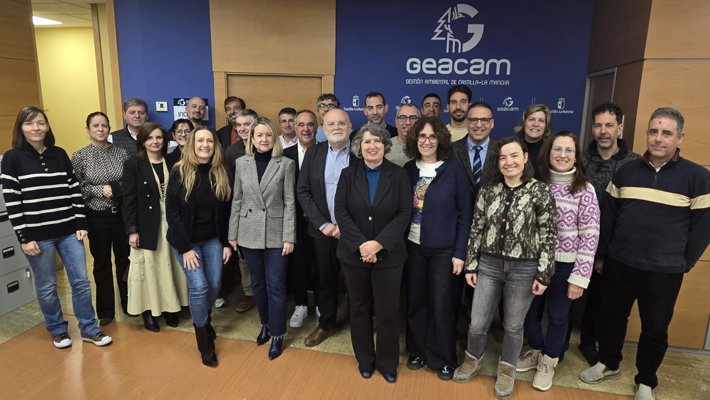 Mercedes Gómez, quien estuvo acompañada a lo largo de la jornada por Pedro Antonio Ruiz Santos, delegado de la Junta de Comunidades en Albacete, y por Llanos Valero, delegada provincial de Desarrollo Sostenible, tuvo la oportunidad de visitar la nueva sede de Geacam. Junto al gerente de la empresa pública, Miguel Peña, pudo conocer las instalaciones de primera mano.