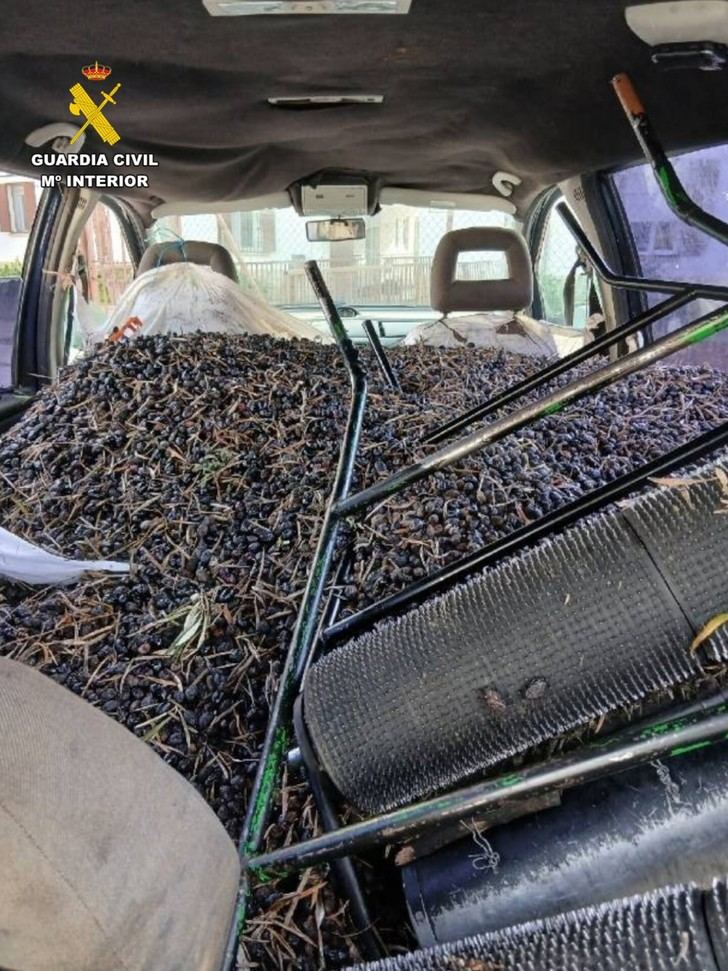 Durante uno de estos operativos, los agentes identificaron un vehículo ocupado por tres personas. Al registrarlo, encontraron una considerable cantidad de aceitunas y diversas herramientas utilizadas para su recolección.
