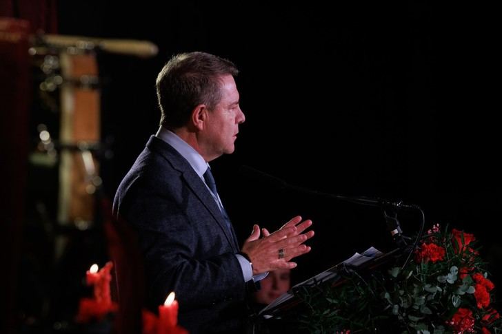 El presidente destacó la importancia simbólica del tambor en Hellín: “Estamos celebrando ni más ni menos que 50 años de la Unión Musical, magnífica, 50 años del monumento al tambor, pero es que se celebran 150 años del nacimiento del tambor que a veces multiplica por 10 la vida de algunos países. Eso ya pone de manifiesto realmente la enorme tradición y raíz que tiene la Semana Santa en Hellín”.