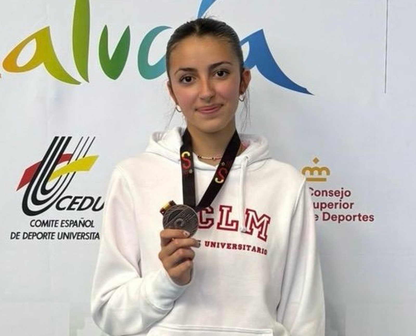 Lucía Jimeno Mora, estudiante de la Universidad de Castilla-La Mancha (UCLM) en el campus de Toledo, ha alcanzado el tercer puesto en el Campeonato de España Universitario (CEU) 2026 de esgrima, logrando así una medalla de bronce.