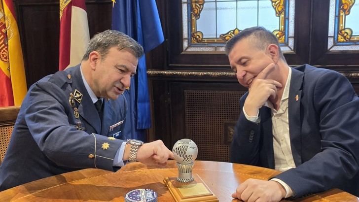 El presidente de la Diputación de Albacete, Santi Cabañero, recibió este miércoles al coronel Óscar Carazo, jefe de la Maestranza Aérea de Albacete. Durante el encuentro, la institución provincial fue galardonada con un obsequio en reconocimiento a su colaboración en las Jornadas de Demostración Tecnológica de la Base Aérea Conectada, Sostenible e Inteligente (BACSI 2026), que se llevaron a cabo recientemente en la Base Aérea de Los Llanos.