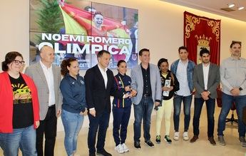 El alcalde de Albacete, Manuel Serrano, ha recibido en el Salón de Plenos del Ayuntamiento a la gimnasta albaceteña Noemí Romero, que acaba de clasificarse para los Juegos Olímpicos de París 2024 en la modalidad de gimnasia de trampolín.